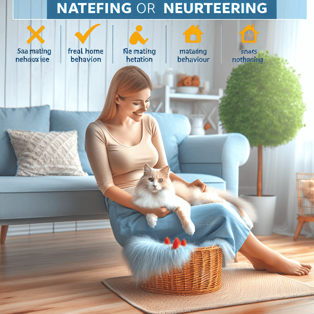 고양이의 중성화 수술은 특히 수컷이 지나치게 표시 행위(스프레이)를 하거나 다른 고양이와 싸우려는 경향을 감소시키는 것으로 알려져 있습니다. 암컷의 경우, 발정기의 불안하고 시끄러운 행동이 없어집니다. 중성화 수술 후 고양이는 전반적으로 더 순하고 집안에 잘 머무르는 경향을 보입니다.